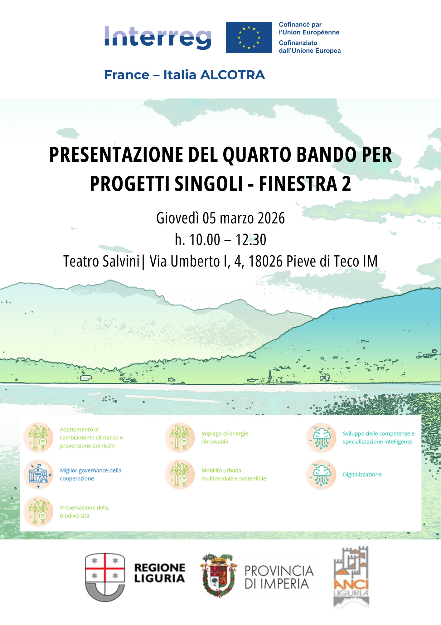 Le séminaire de présentation du Quatrième Appel à Projets Simples – Volet 2 sur le territoire ligure se tiendra :